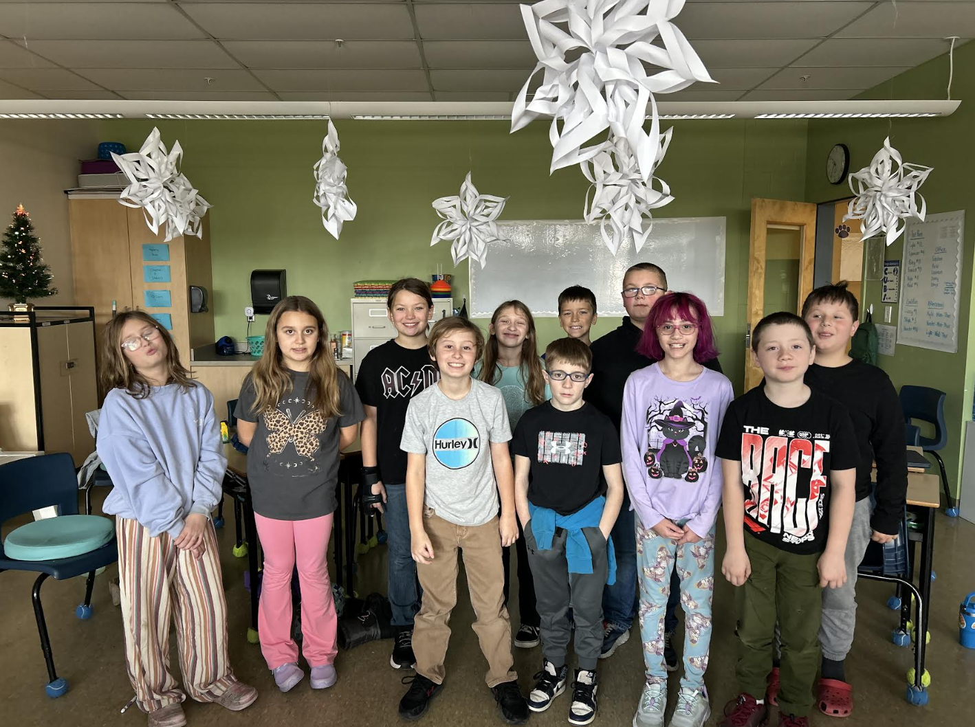 Snowflake Fun: Ms. Rines' 4th grade class has been having fun decorating our classroom in beautiful star/snowflakes for the holiday season. |