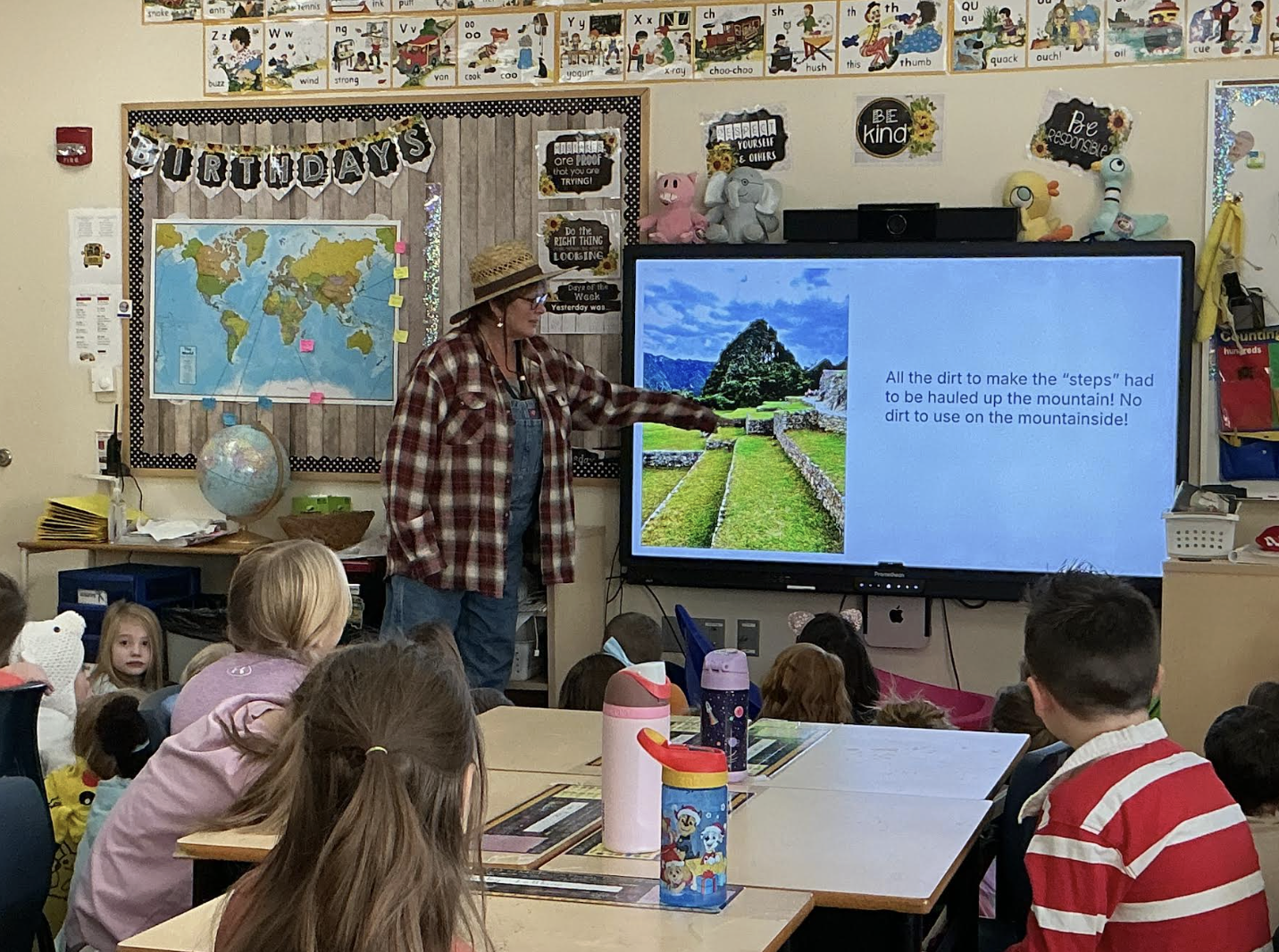 Mrs. Doyen Sharing About Machu Picchu with First Graders |