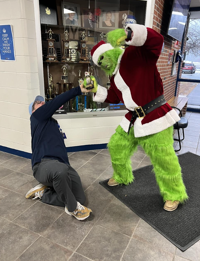 We tried to take the bobblehead. Santa would not allow it. Santa says TWKDMS wins with 98.67% participation because "Central Office is too small to compete on their own." |