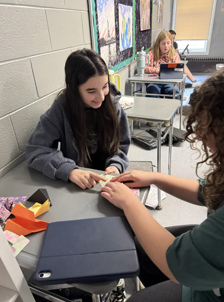 In Geography class we were comparing cultural geography topics. Students compared the geography of the NorthEastern United States with NorthEastern Asia (Japan). Students learned about the different cultures and found similarities and differences between the two. On the last day of the unit students tried different Japanese snacks along with the Japanese art of Origami. The snacks were all consumed, not as much success was had with Origami. |