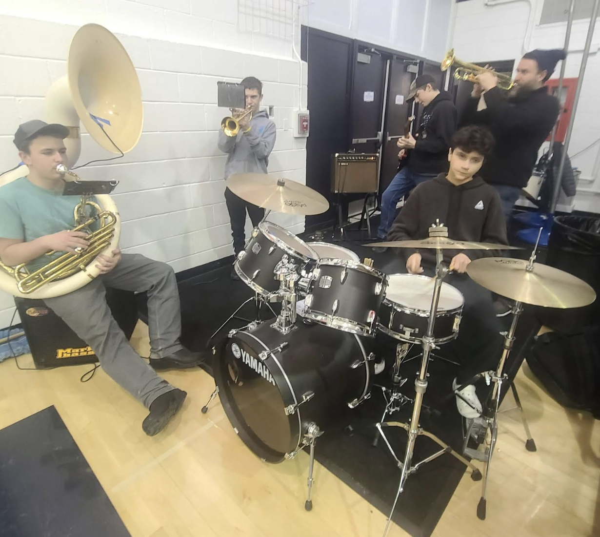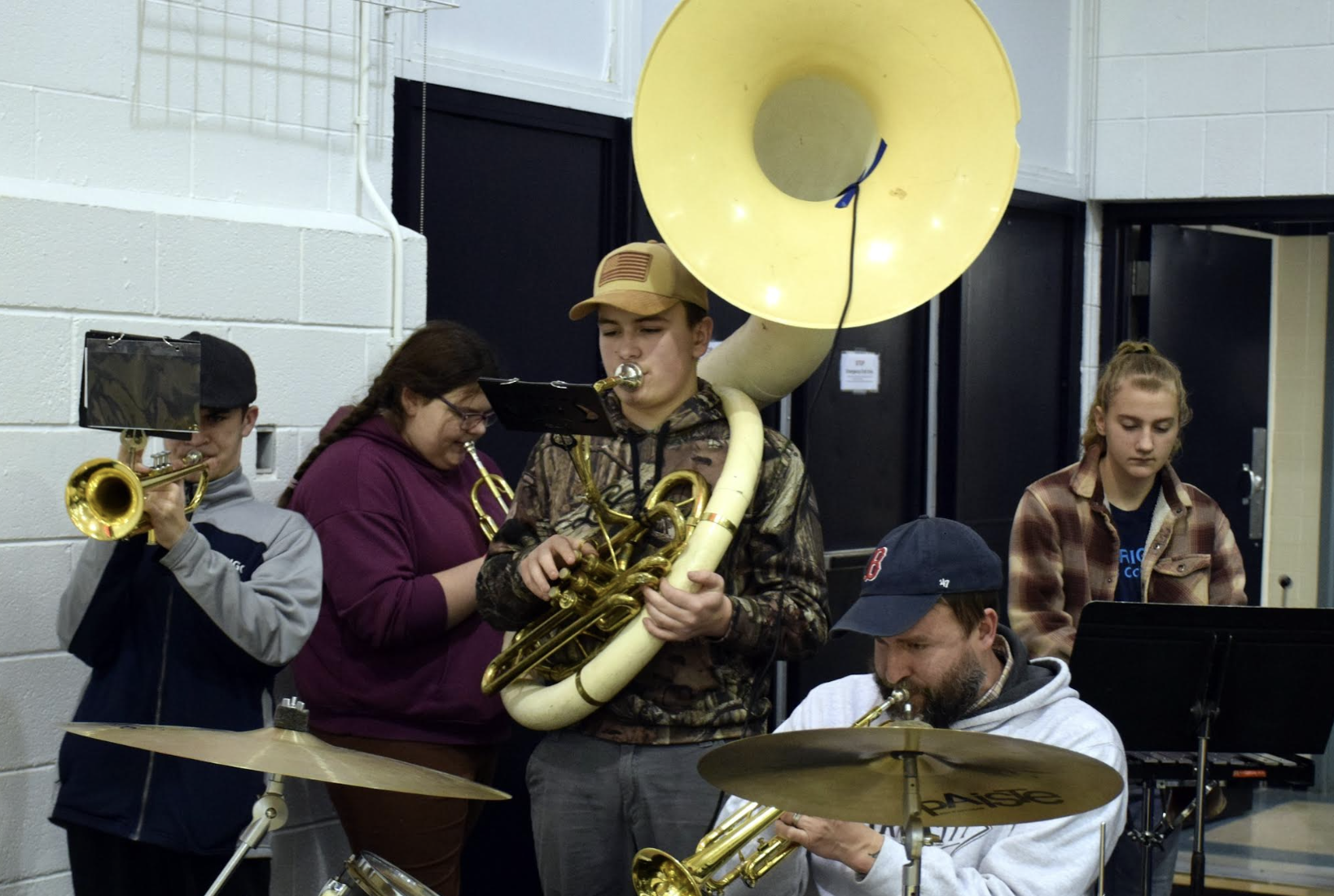 Dirigo Pep Band is in full force! Spencer, Lito, Mason, Nova, Ethan, Max, and Bonnie playing at a bunch of varsity basketball games. The crowd loves it! |