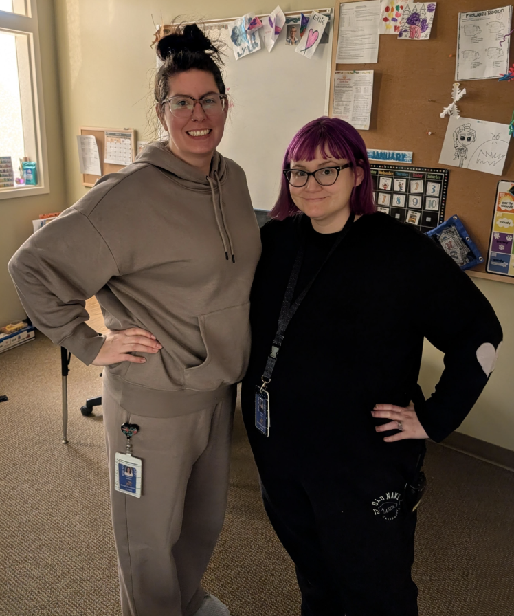 While Charlie was out of the building, Erin encouraged staff to be super comfy! |