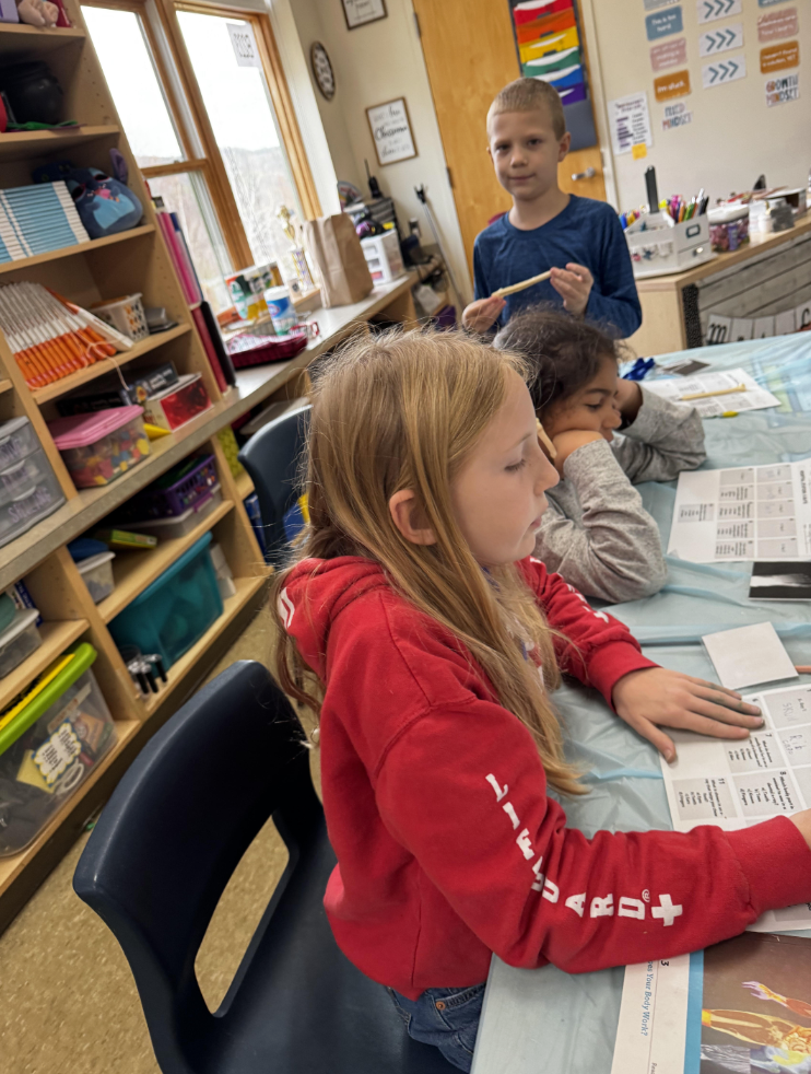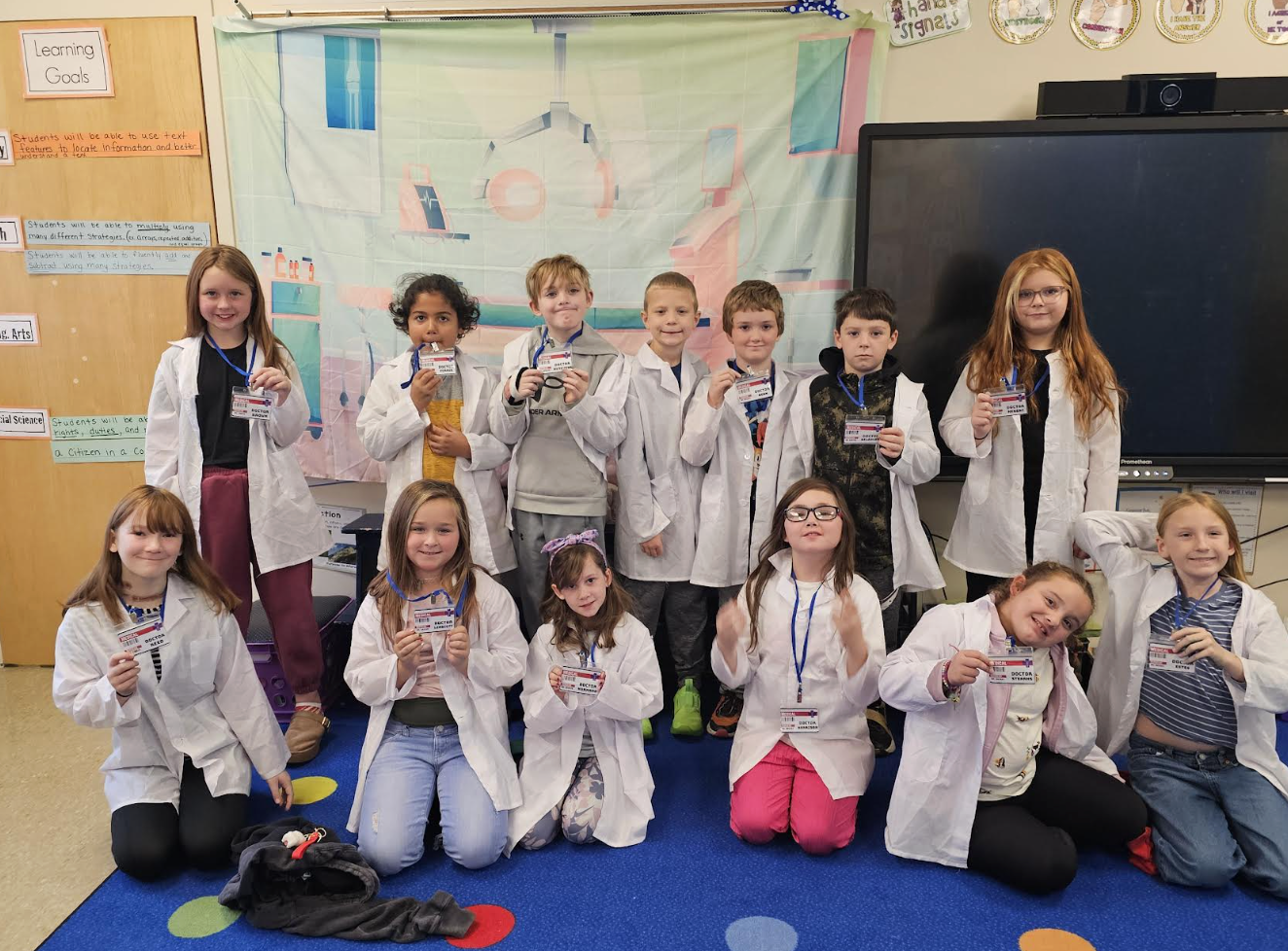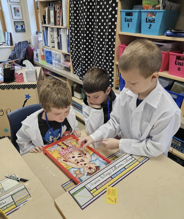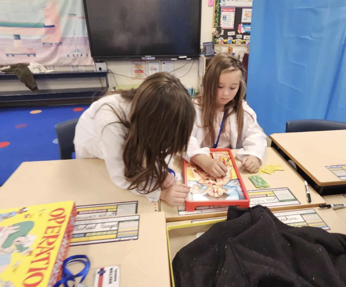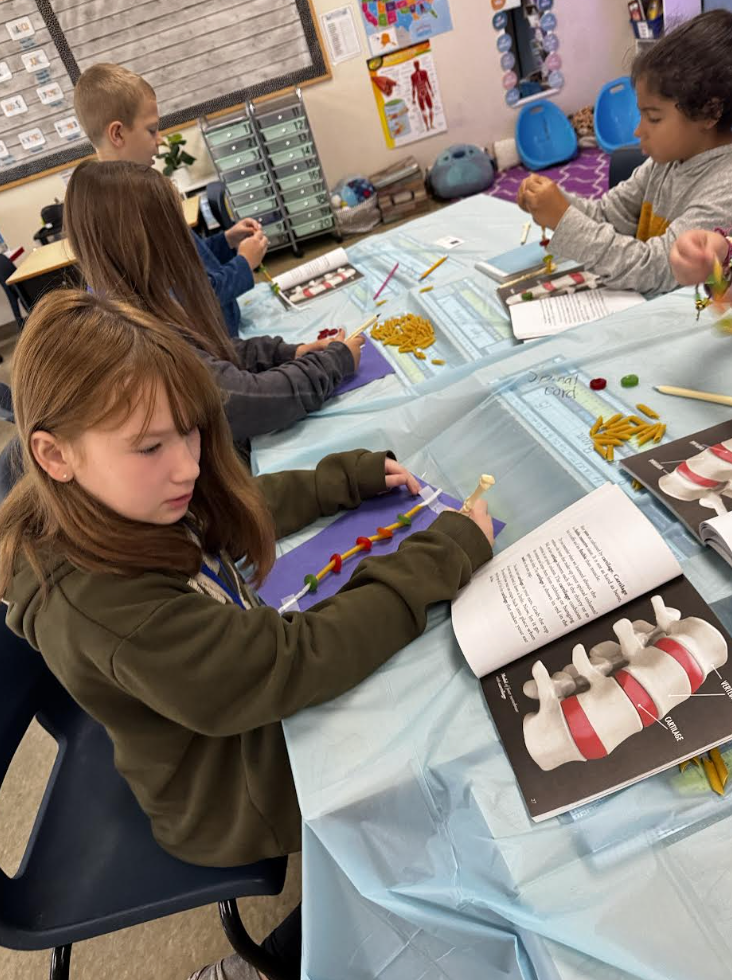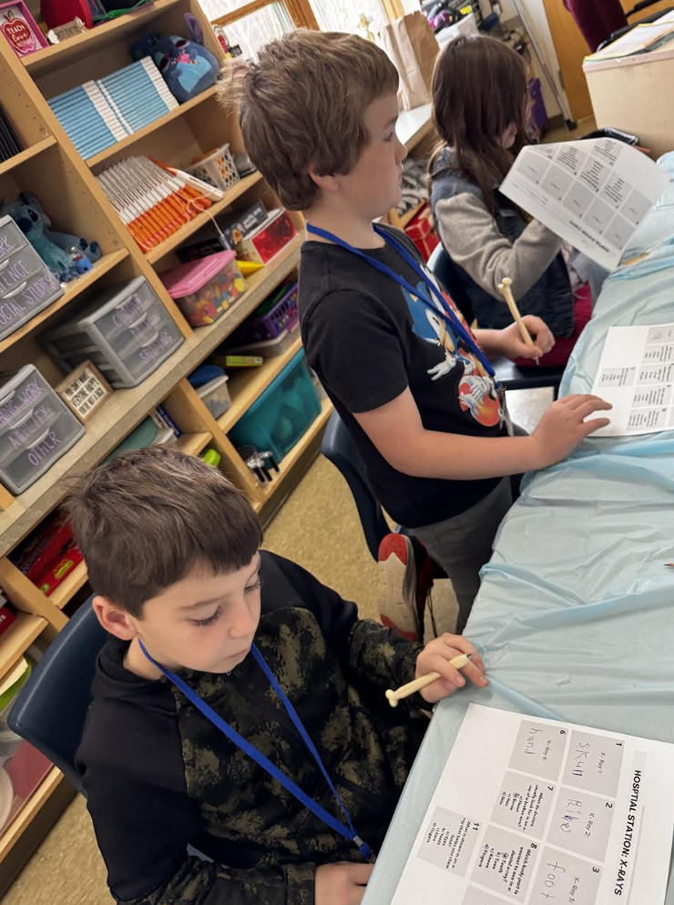 Third grade student doctors put their knowledge of the human body from Amplify Unit 3 to use in some operation room themed stations! They built models of their spine, read X-rays, played a bit of operation, and made a trace of their body with some labeling! |