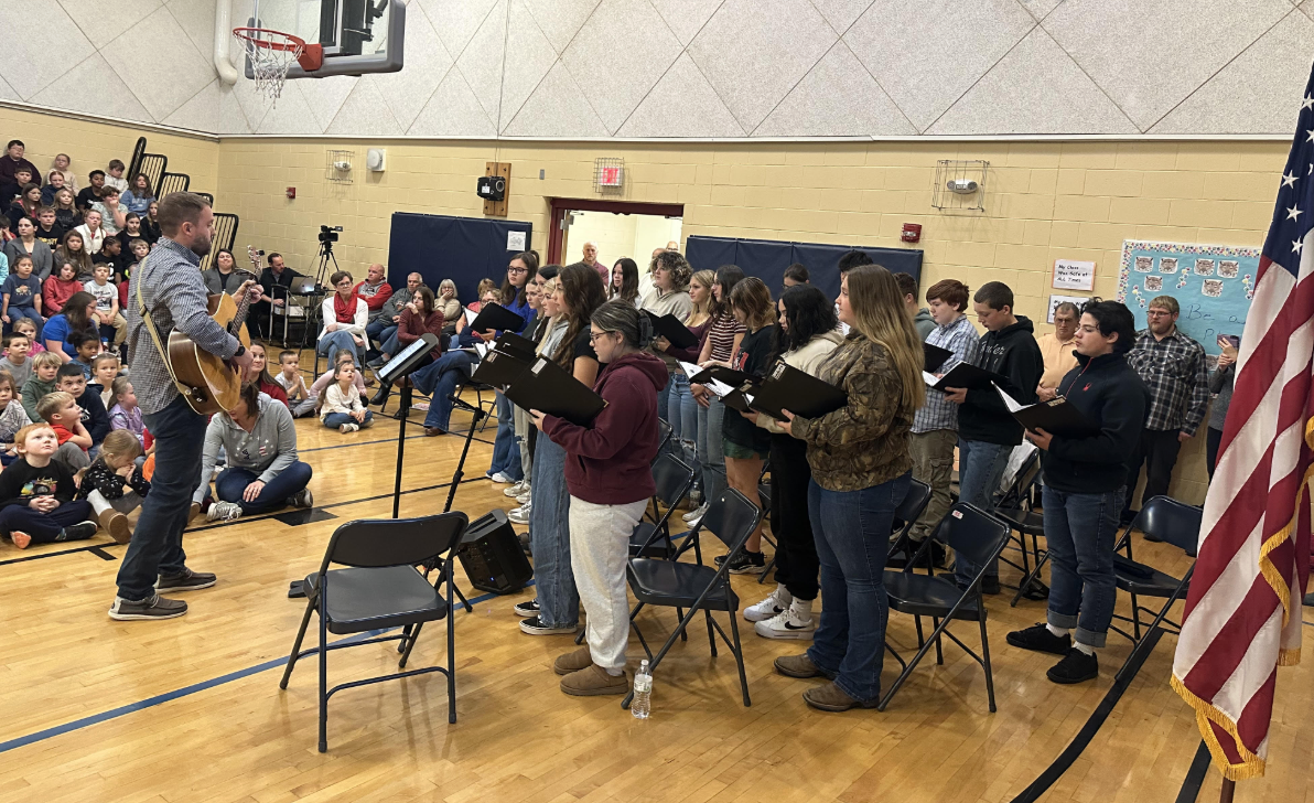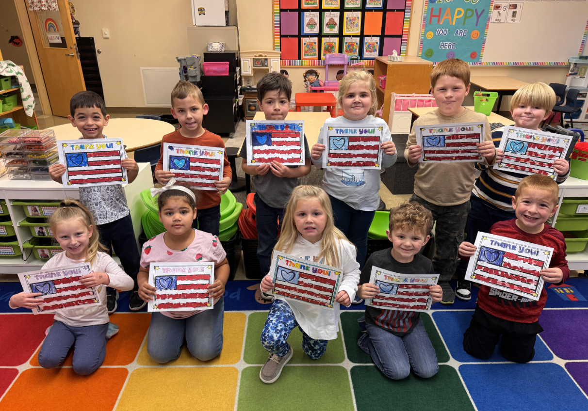 Kindergarten students made flags and sang two songs to honor our Veterans at our Veteran's Day Assembly.