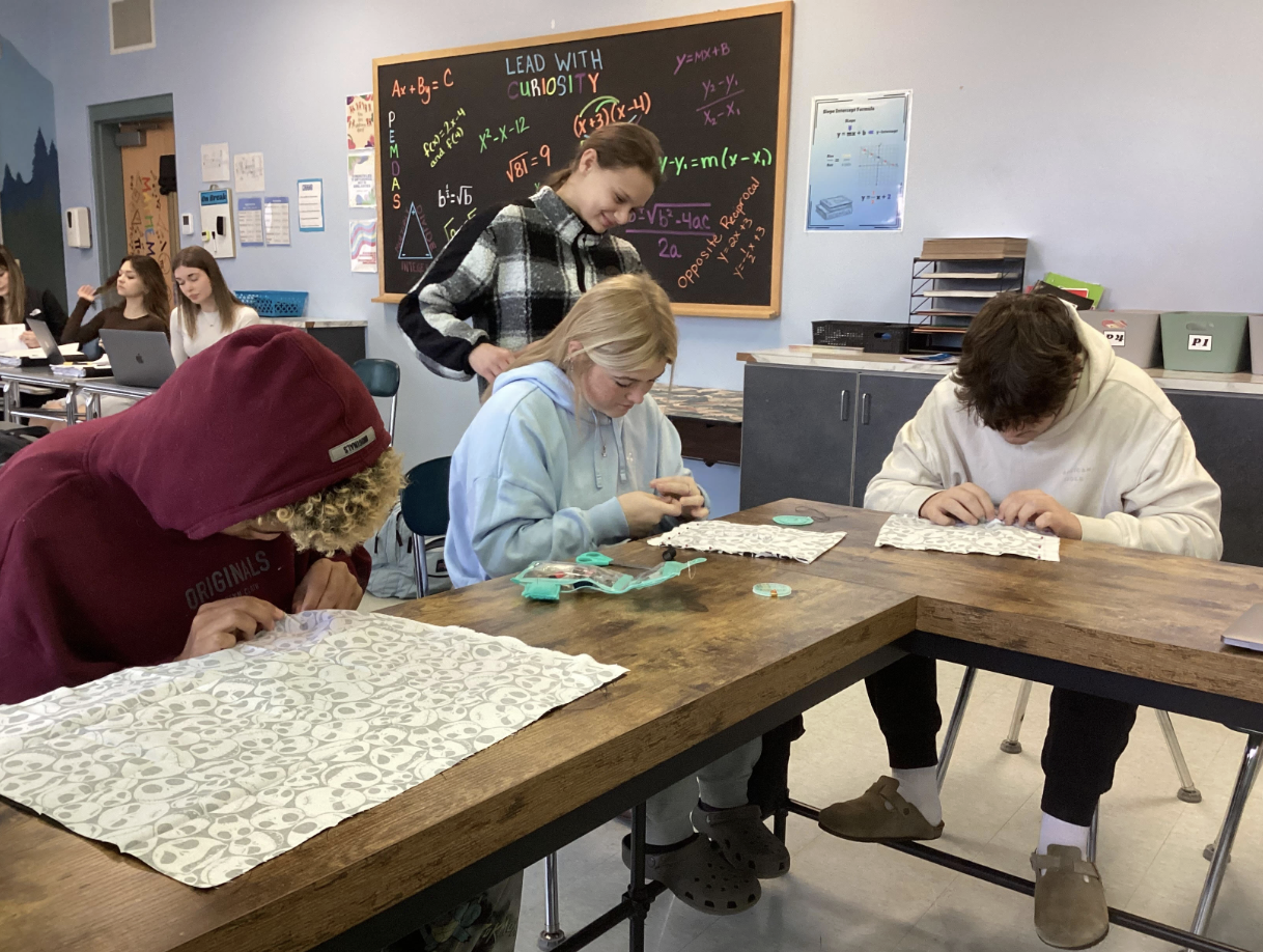 This is my learning lab, I have students when they have completed work and grades are good they have been learning to sew. We are making pillows. |